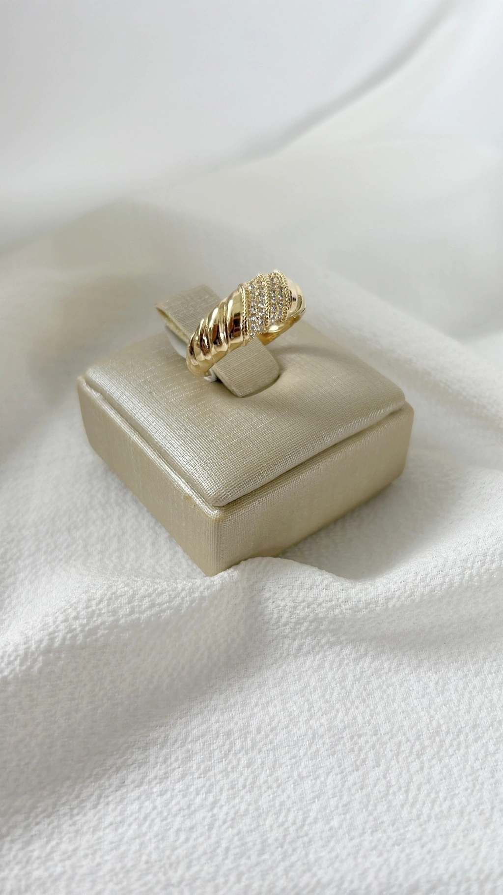 Anel croissant liso e cravejado de zircônias na cor branca banhado a ouro.