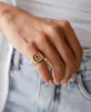 Anel dedo mínimo liso com cristal verde redondo banhado a ouro.