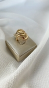 Anel oval cravejado de zircônia banhado a ouro