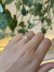 Anel triplo com solitário cristal baguete e dois aparadores de uma fileira cravejada com zircônias baguete e redondas ambas brancas.