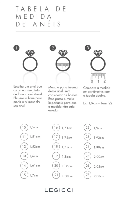 "Em virtude de cada monitor, a cor das pedras e banhos podem variar, sutilmente, da foto do site."