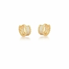 Argola com granulações lisas, com três fileiras de zircônias na cor branca com fecho de click banhada a ouro.