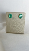 Brinco com cristal oval fusion na cor turmalina oval banhado a ouro.