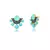 Brinco com cristal redondo na cor turmalina, e cristais cabochão redondos na cor azul e cravejado de zircônias na cor safira banhado a ouro.