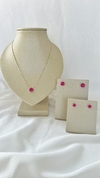 Brinco com cristal redondo rosa fusion banhado a ouro.