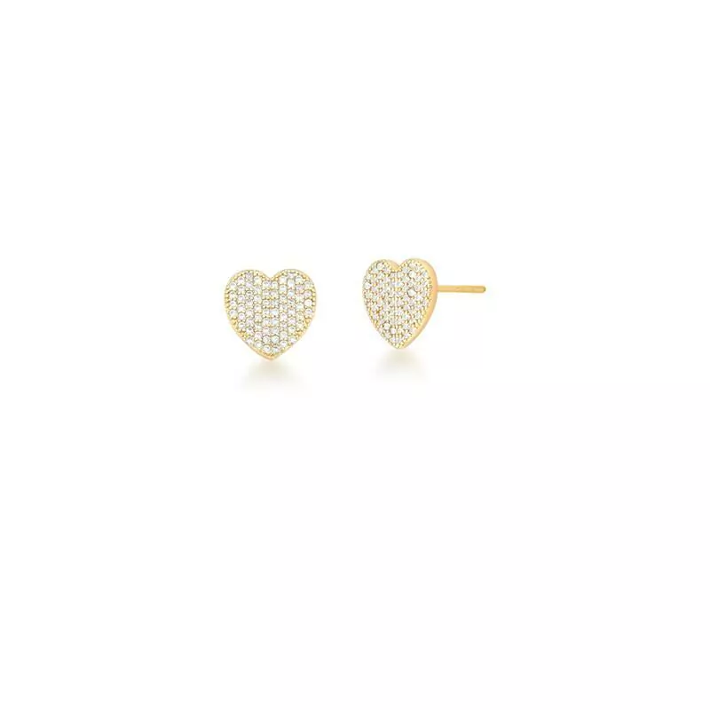 Brinco de coração cravejado de zircônias na cor branca banhado a ouro.