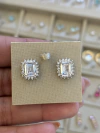 Brinco retangular banhado a ródio, com cristal e zircônias brancas. Esse brinco remete a elegância, delicadeza e sofisticação.