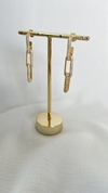 Brinco dois elos pêndulo cravejado de zircônias banhado a ouro