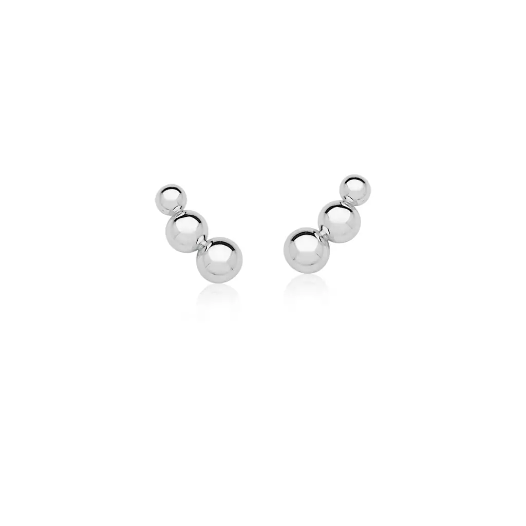 Brinco ear cuff com três esferas lisas banhado a ródio.