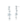 Brinco flores e cristais água marinha banhado a ródio