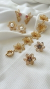 Brinco meia flor vazada cristal rosa banhado a ouro