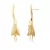 Brinco pêndulo de flor texturizado vazado liso banhado a ouro.