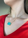 Aro com pingente assimétrico e cristal turquesa banhado a ouro