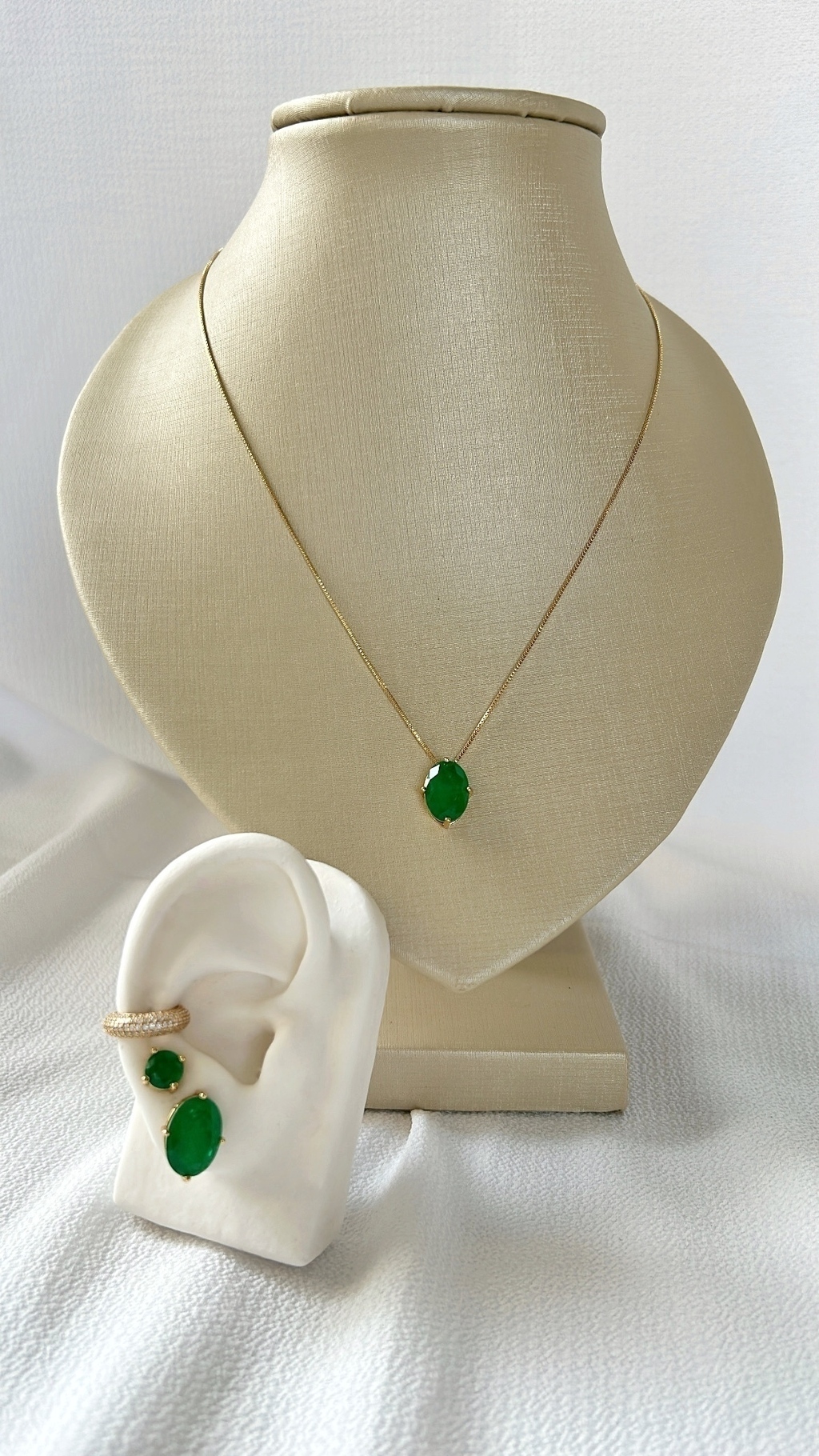 Colar com cristal esmeralda oval banhado a ouro