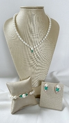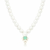 Colar com pérola shell, e pingente com cristal quadrado na cor trumalina , e zircônias gotas e redondos ambos na cor branca, com fecho magnético banhado a ouro.
