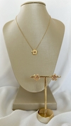 Colar com pingente de flor liso e cravejado banhado a ouro