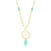 Colar em malha elos retangulares, com pingente de madrepérola com cristal de gota turmalina pêndula banhado a ouro.