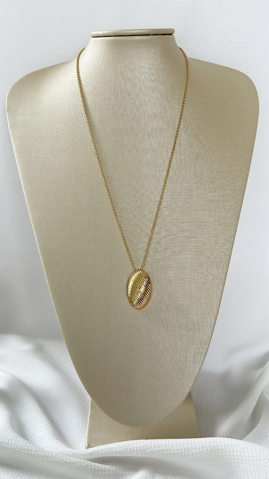 Colar com pingente oval abaulado texturizado liso banhado a ouro