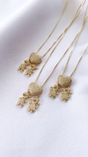 O material base consiste em uma liga metálica de cobre e zinco e recebe o banho de ouro, acrescentamos também um verniz de proteção que garante uma durabilidade maior da peça.