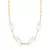 Colar em elos retangulares lisos com quatro cristais ovais transparentes e zircônias cravejadas brancas banhado a ouro.