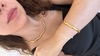 Colar curvo maleável, texturizado, liso, com fecho gaveta, acetinado banhado a ouro.