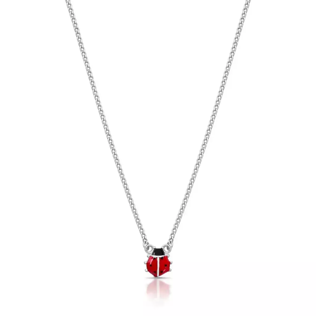 Colar kids em prata 925 com banho de ródio, pingente de joaninha esmaltado e corrente com malha groumet curva. Peça delicada e charmosa, perfeita para complementar o visual das crianças com estilo e segurança.