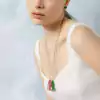 Corrente em malha portuguesa com pingente tassel com cristais búlgaros rosa, pérola de água doce e zircônias brancas, banhado a ouro.