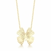 Colar em malha elos retangulares, com pingente de borboleta vazada e lisa banhado a ouro.