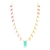 Colar com malha portuguesa com pingentes coloridos degradê e pedra central em turmalina fusion, ambos banhados a ouro.