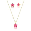 Conjunto brinco e colar de flor com zircônias banhado a ouro