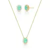 Conjunto com cristal oval e zircônias banhado a ouro