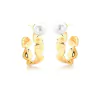 Meia argola com folhas lisas e pérola shell banhada a ouro.