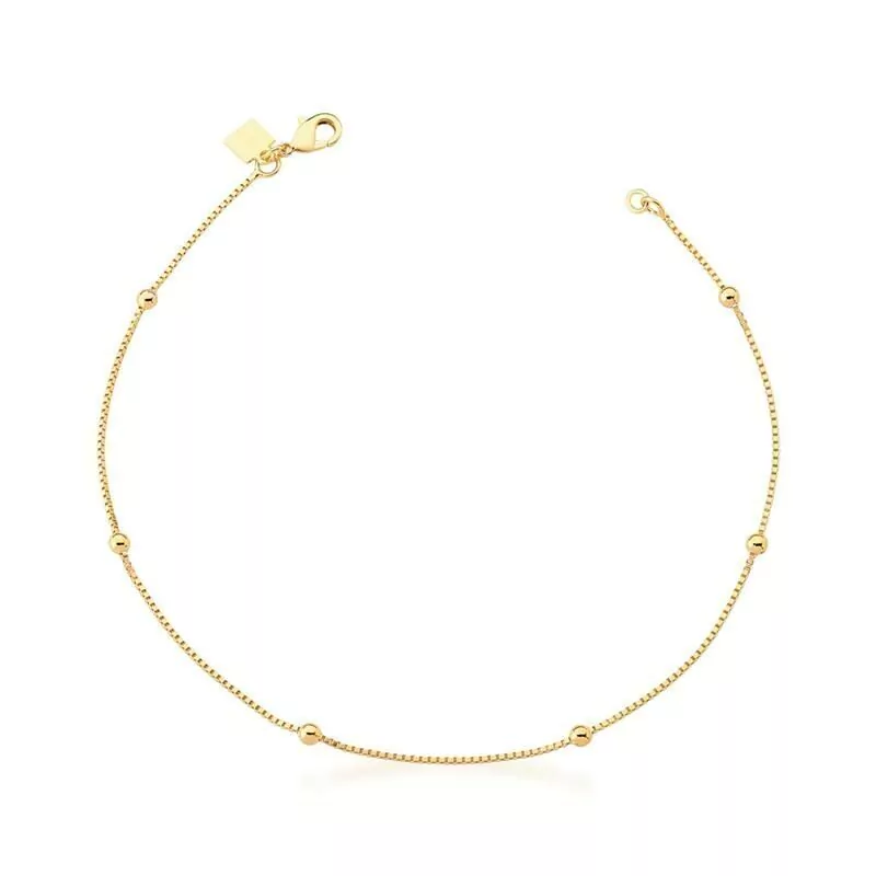 Tornozeleira banhada a ouro com oito bolinhas lisas.